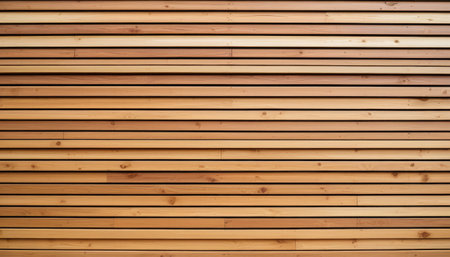 Detailed, textured view of cedar wood slats forming a wall. Features a warm, natural tone, displaying a horizontal pattern and the wood's grain. Perfect for backgrounds.