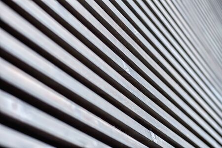 Metallic black striped surface of building wall