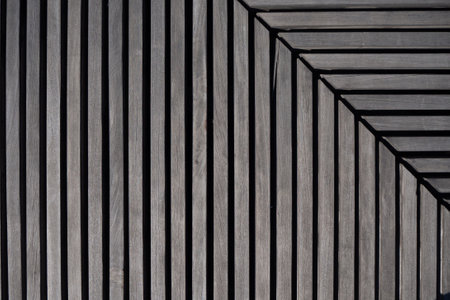 Architectural or facade design. Wooden plate background. Dark timber cladding in geometric composition. Shows contemporary wood surface detail. Copy space