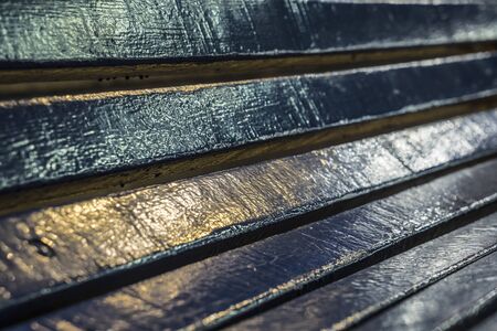 abstract background wet old boards high contrast in defocused atmosphere. fragment of a wet wooden bench with peeling paint