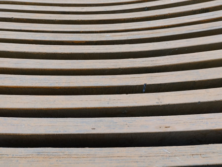 Wooden seats in a stadium, closeup of photo with selective focus
