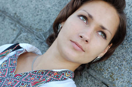Portrait of beautiful young woman in traditional Ukrainian clothing