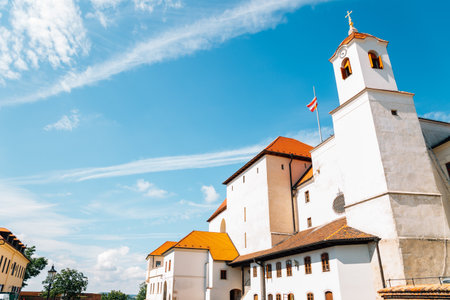 RUZOMBEROK, SLOVAKIA - JUNE 3, 2015: View to the town hall of the city of Ruzomberok on June 3, 2015. Ruzomberok is a town in northern Slovakia, in the historical Liptov region.