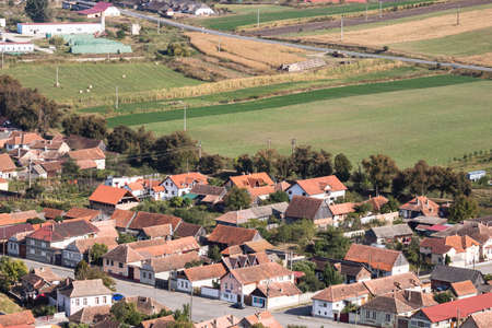 Sacadate village Sibiu county Romania, perspective from the road to Nucet