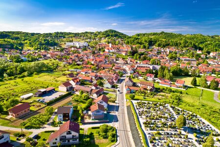 Town of Varazdinske Toplice in green hillside landscape aerial view, Zagorje region of northern Croatia