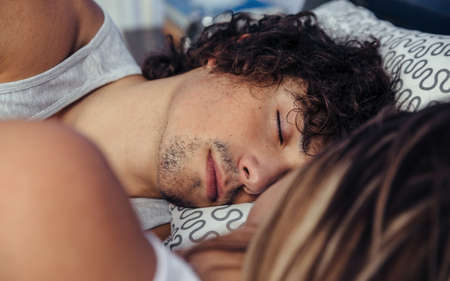 Sound sleep. Healthy lifestyle. Comfy softness of warm bed. Man sleeping peacefully. Calm and coziness.