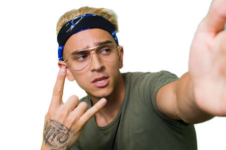 Cool hipster man posing in the studio