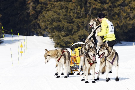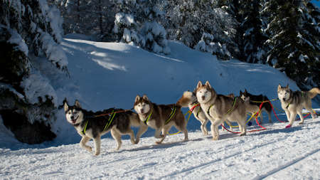 Winter sled dog race in the Austrian Alps
