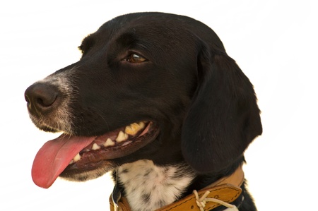 Cute playful dog on a white background with space for text. High quality photo