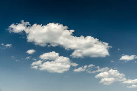 Deep blue sky background with withe clouds. Natural composition of nature.