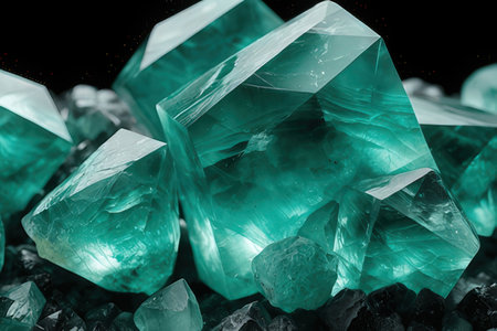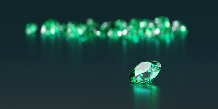 Green emerald diamond group placed on black background soft focus 3d rendering