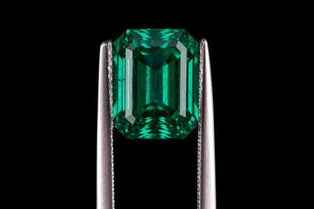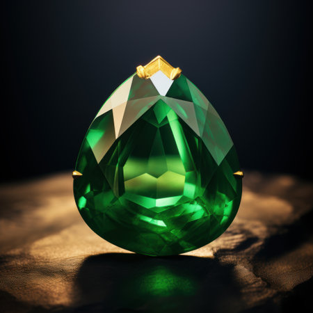 Stunning Emerald Gemstone with Brilliant Green Hue on Soft Focused Background.
