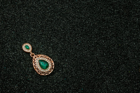 Cushion cut emerald and diamond earrings on black background created with generative AI technology. High quality illustration