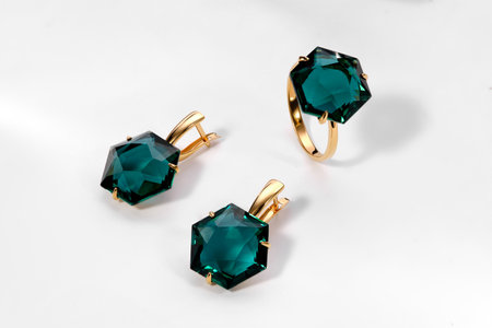 Elegant jewelry set. Jewelery set with gemstones. jewelry accessories collage. product still life concept. Ring, necklace and earrings.