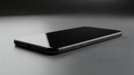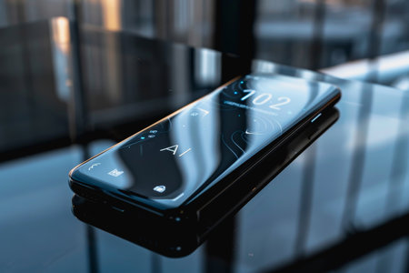 fashionable touchscreen phone with camera on black background technology texture