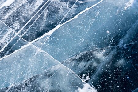 Texture of ice of Baikal lake in Siberia. blue lake ice.