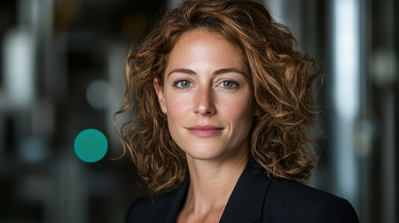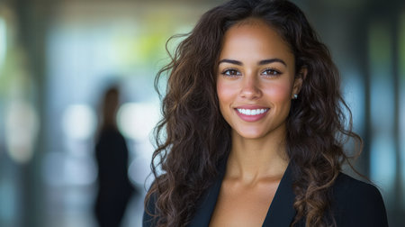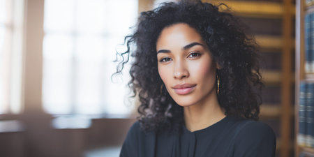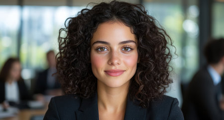 Confident woman with curly hair in a professional setting