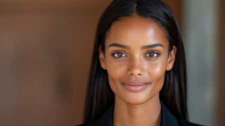 Portrait of a Confident Young Woman with Long Brown Hair, Gentle Smile, and Professional Attire