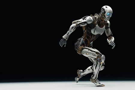 Cyborg running fast, artificial intelligence robot, future technology, humanoid machine,