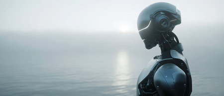 Futuristic robot head silhouette set against a dark backdrop capturing a modern aesthetic
