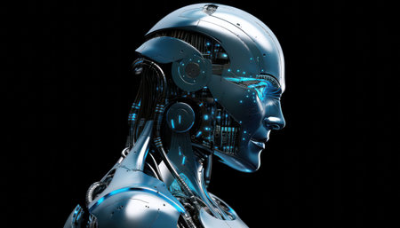 An AI-generated illustration of a humanoid robot's profile isolated on a black background.