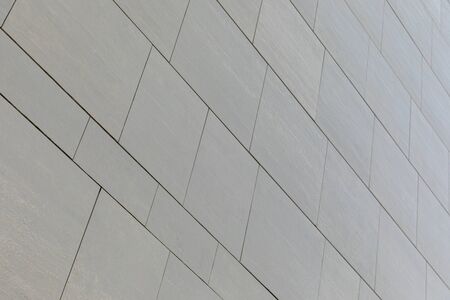 Low angle view of wall with gray smooth tiles of different shape (rectangular and square)