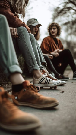They know how to skate Full length of young people skateboarding while hanging out at the skate park outdoors : Generative AI