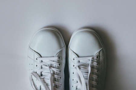 bangkok,Thailand,July 2,2021-original adidas sneakers shoes with shoelace on white floor rear back view soft focus with copy space