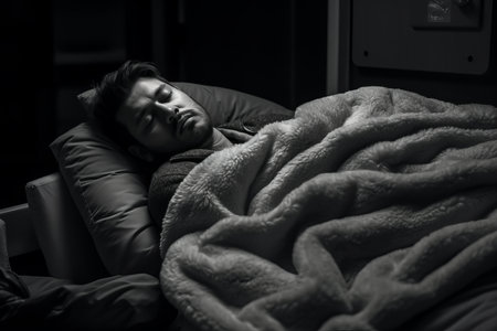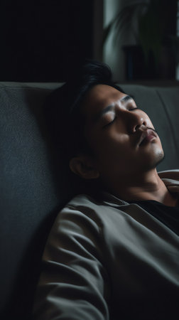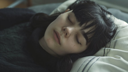 Young man is sleeping soundly in his bed, enjoying a peaceful and restful slumber