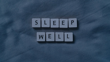 Sleep well words on a soft bed sheet. Sleep health concept. Copy space for text
