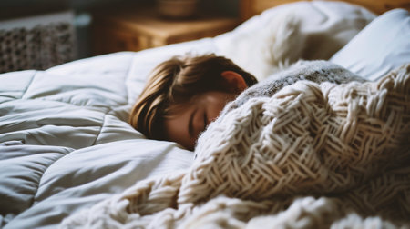 shot of an unrecognizable woman lying on her bed, created with generative ai