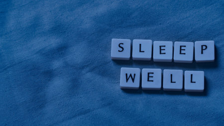Sleep well words on a soft bed sheet. Sleep health concept. Copy space for text