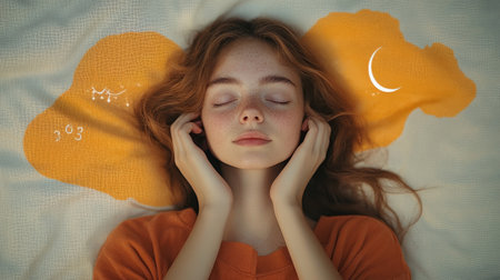 A Serene Portrait Depicting a Young Woman Who is Peacefully Sleeping in Calmness and Comfort