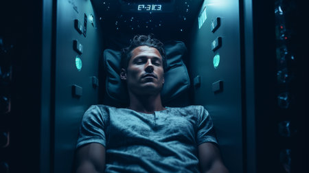 A sleep tester hooked up to electrodes measuring his brainwaves as he dozes off on the revolutionary quantum foam