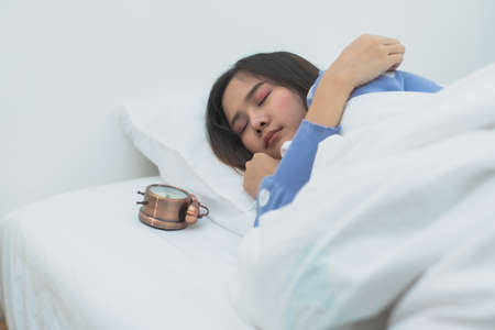 Woman sleeping in the bed at morning