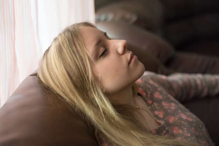 Teen girl sleeping on the couch