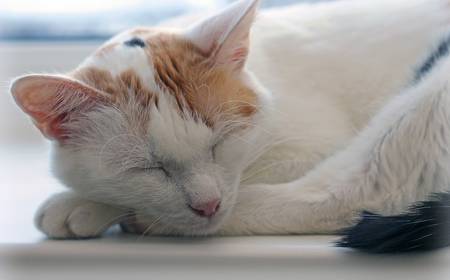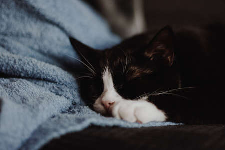 sleeping domestic cat soft focus photo