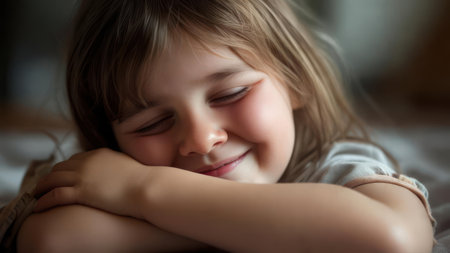 Child resting, peaceful smile
