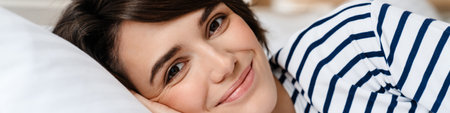 A woman with a smile on her face laying down, AI