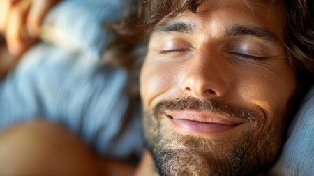Dreaming a man with a satisfied look on his face