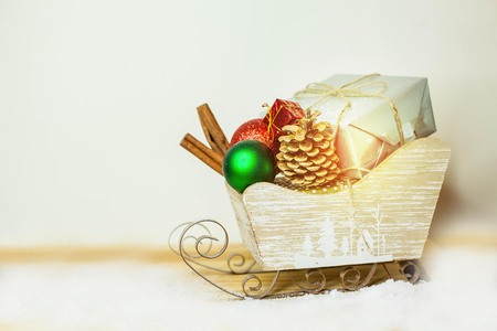 Sledge for Christmas presents. Beautiful background for christmas ideas.