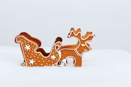 Santa Claus sleigh with gifts on the snowy field in winter.