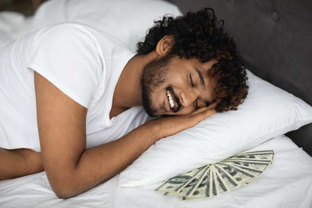 Rich indian man sleeping with lots of cash