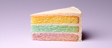 A vibrant slice of colorful layered cake presented on a simple plate, capturing the essence of delightful desserts, perfect for celebrations or festive gatherings.