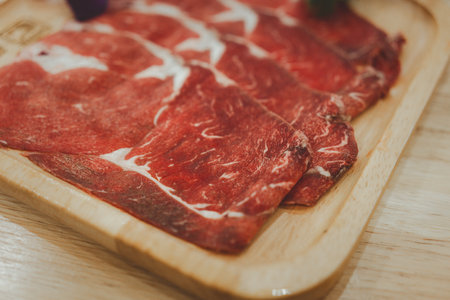 Fresh red sliced beef with selective focusing for cookery chef