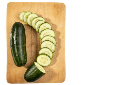 Fresh sliced cucumber on a wooden cutting board