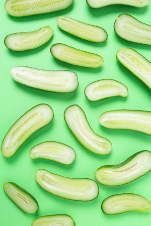 Flat lay fresh cucumber sliced texture horizontal
