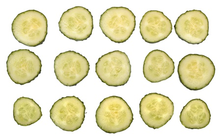 slices of cucumber on a white background - food background