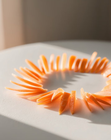 AI Generated. The translucent halo of sliced carrots in sunlight