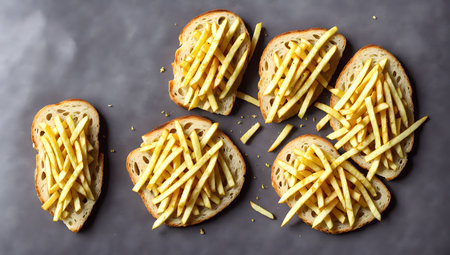 A visually appealing arrangement of freshly baked artisan bread slices showcased on a reflective surface, emphasizing texture and warmth while inspiring culinary creativity.